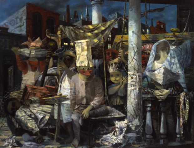 if this be not I. a beautiful painting of exhausted children in post war /post party detritus, shows Guston’s skills as a figurative artist, after years painting monumental murals in Mexico and US schools Guston turned to canvas for this powerful painting.