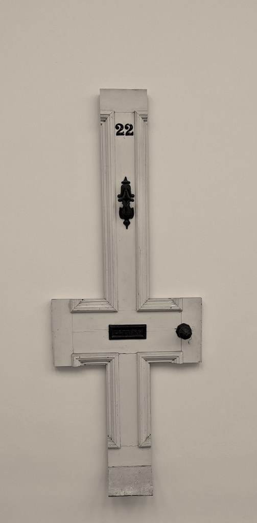 I also had a lot to think about the market in non fungible art, ‘Doors’ must be a formidable expensive piece to make, I cant believe the sale of books and the few chopped up doors shown upstairs in the White Gallery covers the cost of the film.